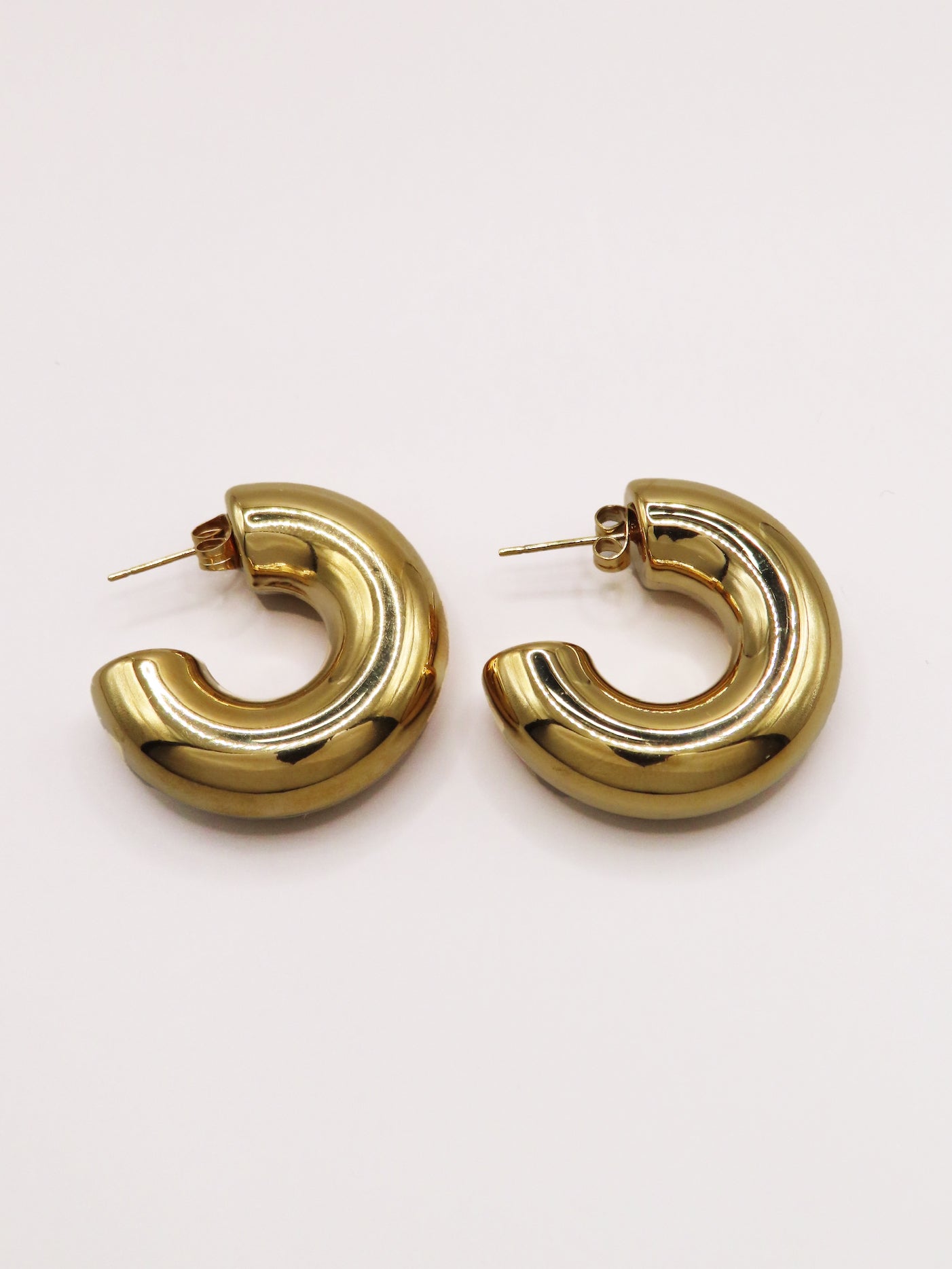 Boucles d'oreilles en acier inoxydable, hypoallergéniques, résistent à l'eau et ne noircissent pas. Disponibles en coloris doré et argenté.