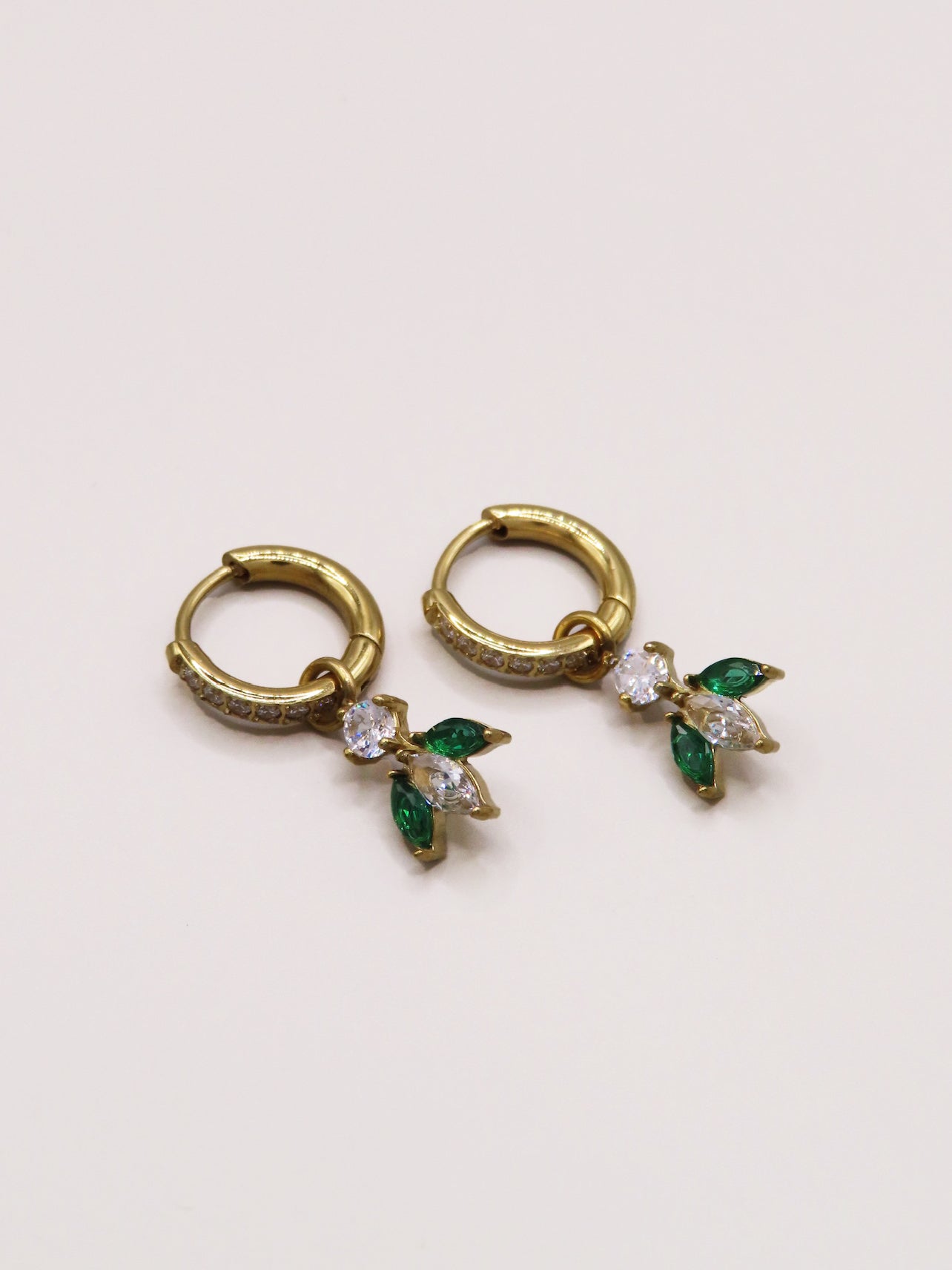 Boucles d'oreilles en acier inoxydable, oxydes de zirconium, hypoallergéniques, résistent à l'eau et ne noircissent pas. Disponibles en coloris doré.
