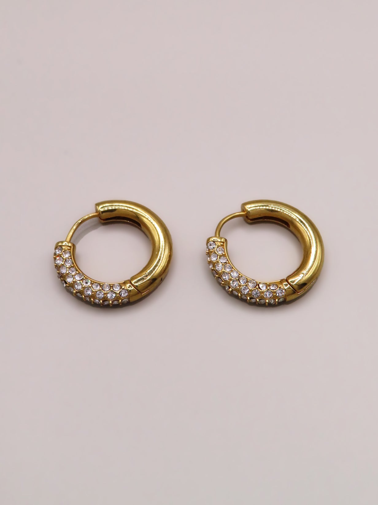 Boucles d'oreilles en acier inoxydable, hypoallergéniques, résistent à l'eau et ne noircissent pas. Disponibles en coloris doré.