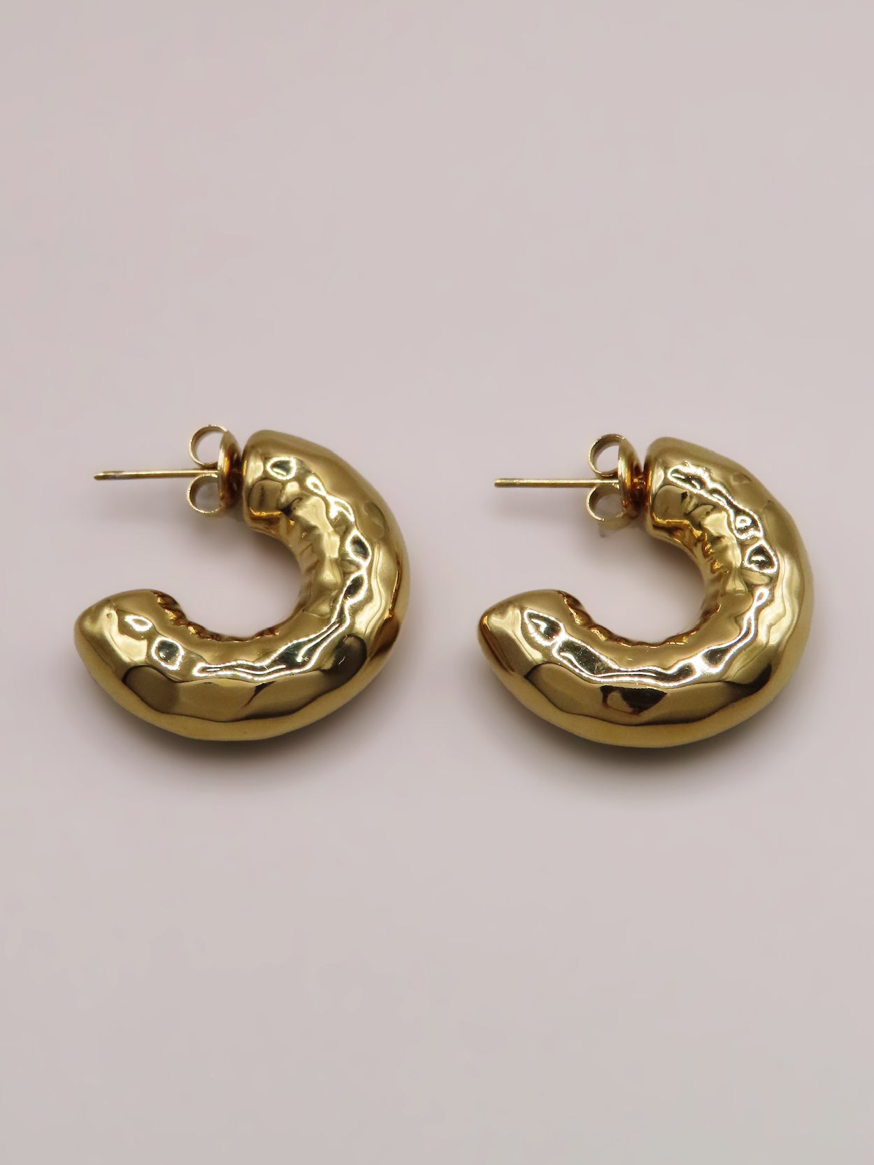 Boucles d'oreilles en acier inoxydable, hypoallergéniques, résistent à l'eau et ne noircissent pas. Disponibles en coloris doré.