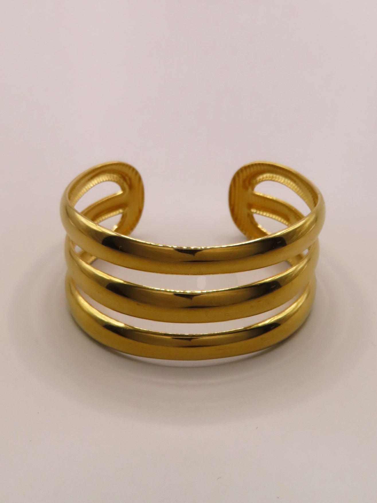 Bracelet en acier inoxydable, taille ajustable, hypoallergénique, résiste à l'eau et ne noircit pas. Disponible en coloris doré.