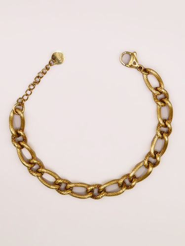 Bracelet en acier inoxydable, taille ajustable, hypoallergénique, résiste à l'eau et ne noircit pas. Disponible en coloris doré.
