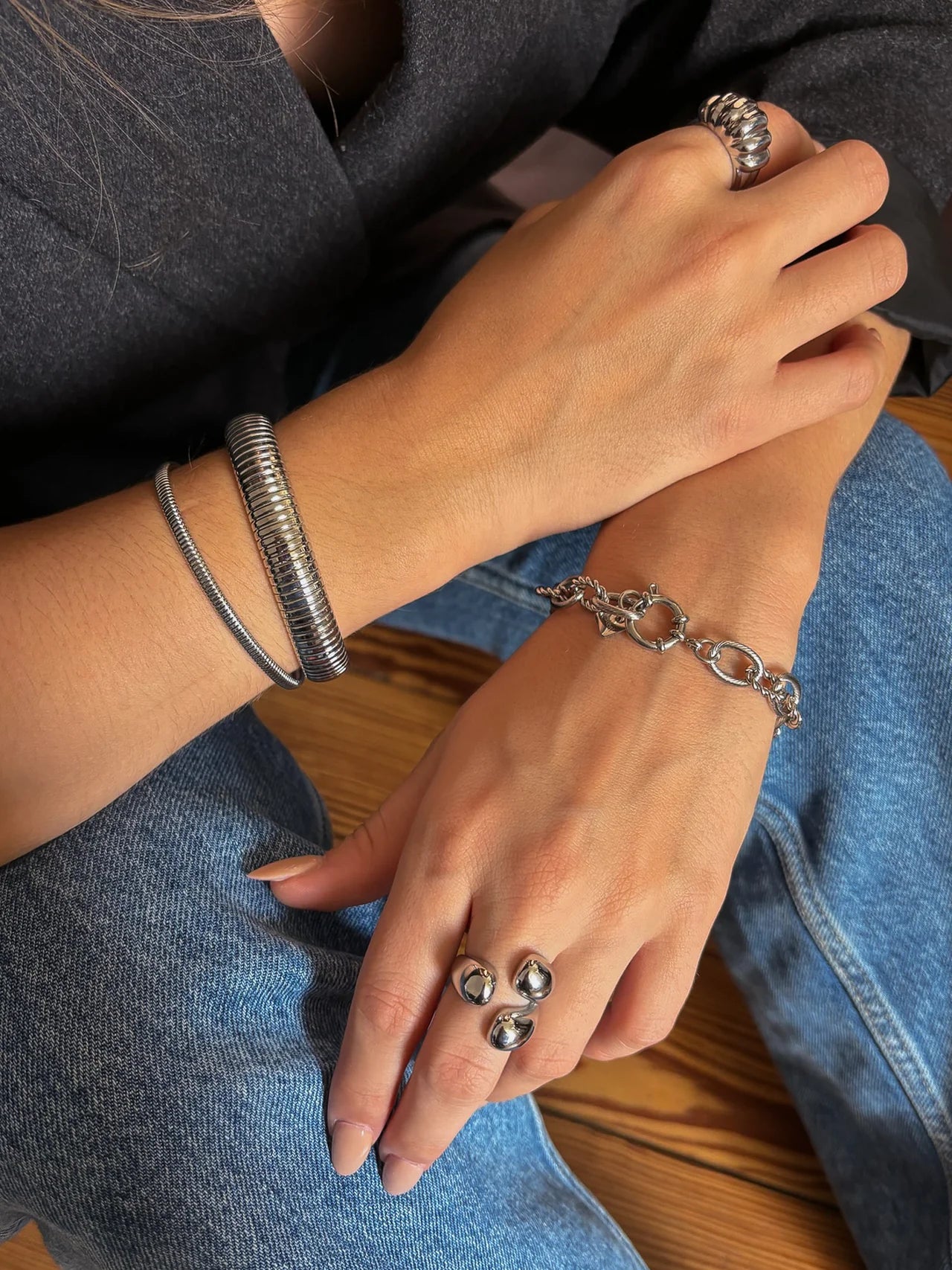 Le bracelet Edith allie audace et minimalisme avec son design épuré. Ce bijou contemporain est parfait pour celles qui recherchent un accessoire affirmé et raffiné.