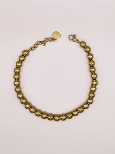 Bracelet en acier inoxydable, taille ajustable, hypoallergénique, résiste à l'eau et ne noircit pas. Disponible en coloris doré.