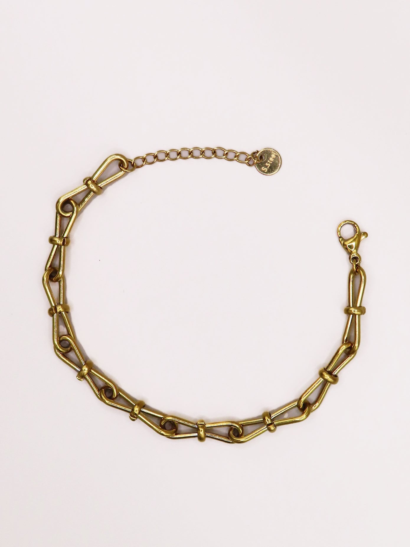 Bracelet en acier inoxydable, taille ajustable, hypoallergénique, résiste à l'eau et ne noircit pas. Disponible en coloris doré.