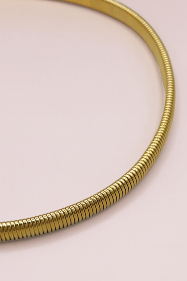 La maille souple et texturée du collier Gilberte apporte une touche de modernité à votre allure, tout en conservant une influence classique. Idéal à porter en accumulation.