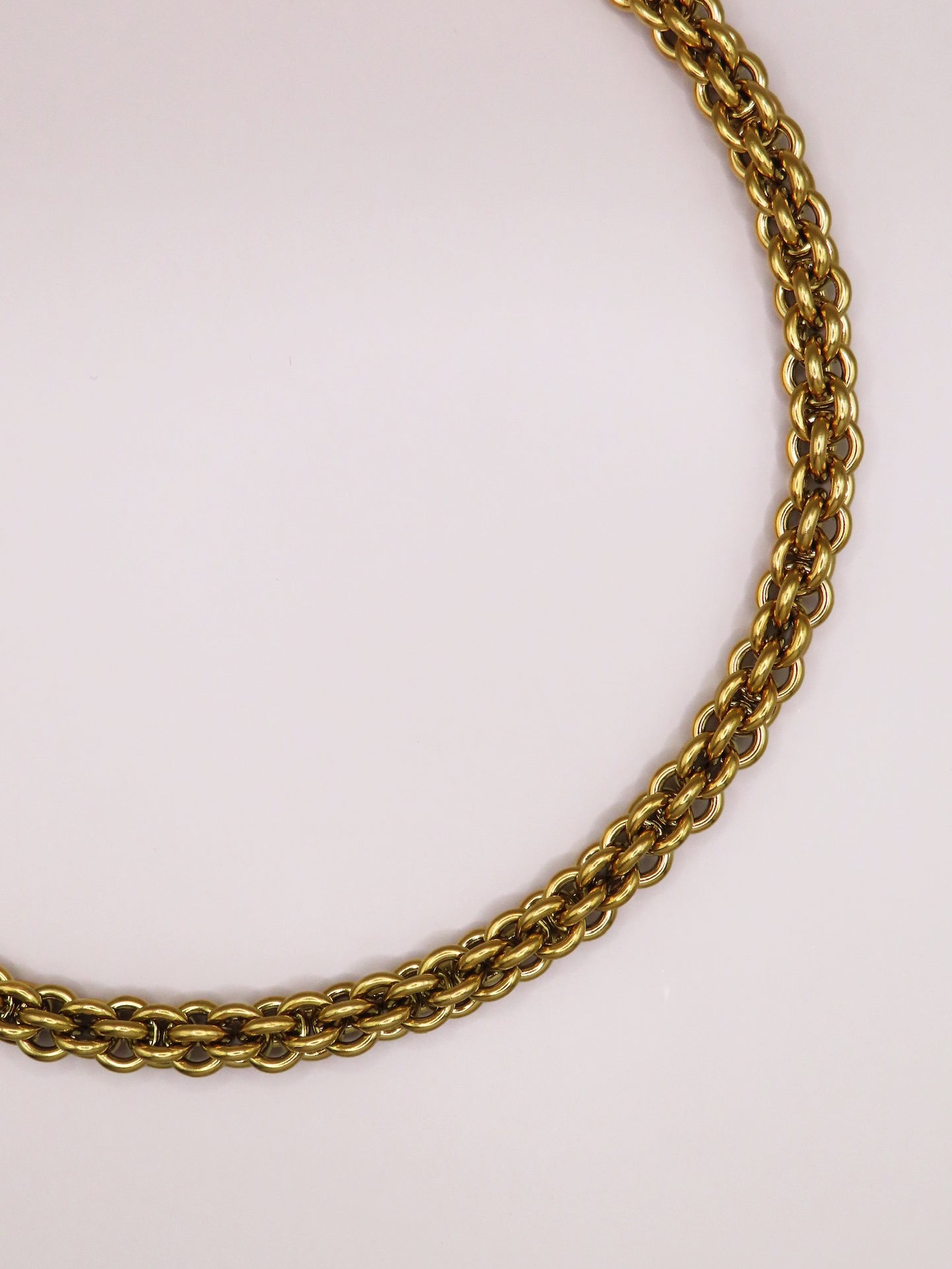 L'association de mailles du collier Léonore capture une élégance naturelle et moderne.