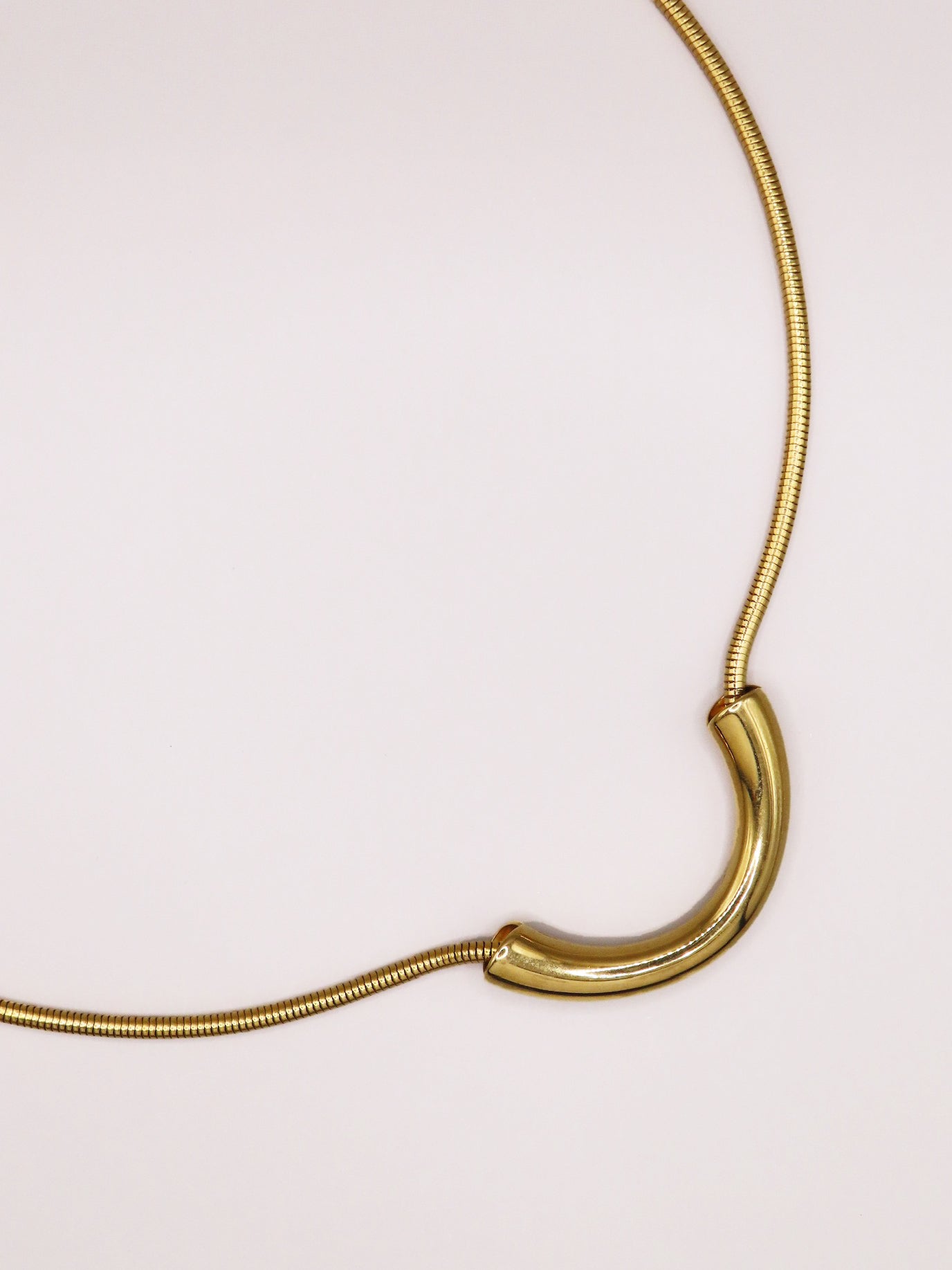 Le design en demi cercle du collier Mélusine crée une harmonie visuelle subtile et moderne. Sa simplicité le rend polyvalent, idéal aussi bien pour un look de tous les jours que pour des occasions plus formelles.