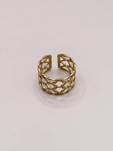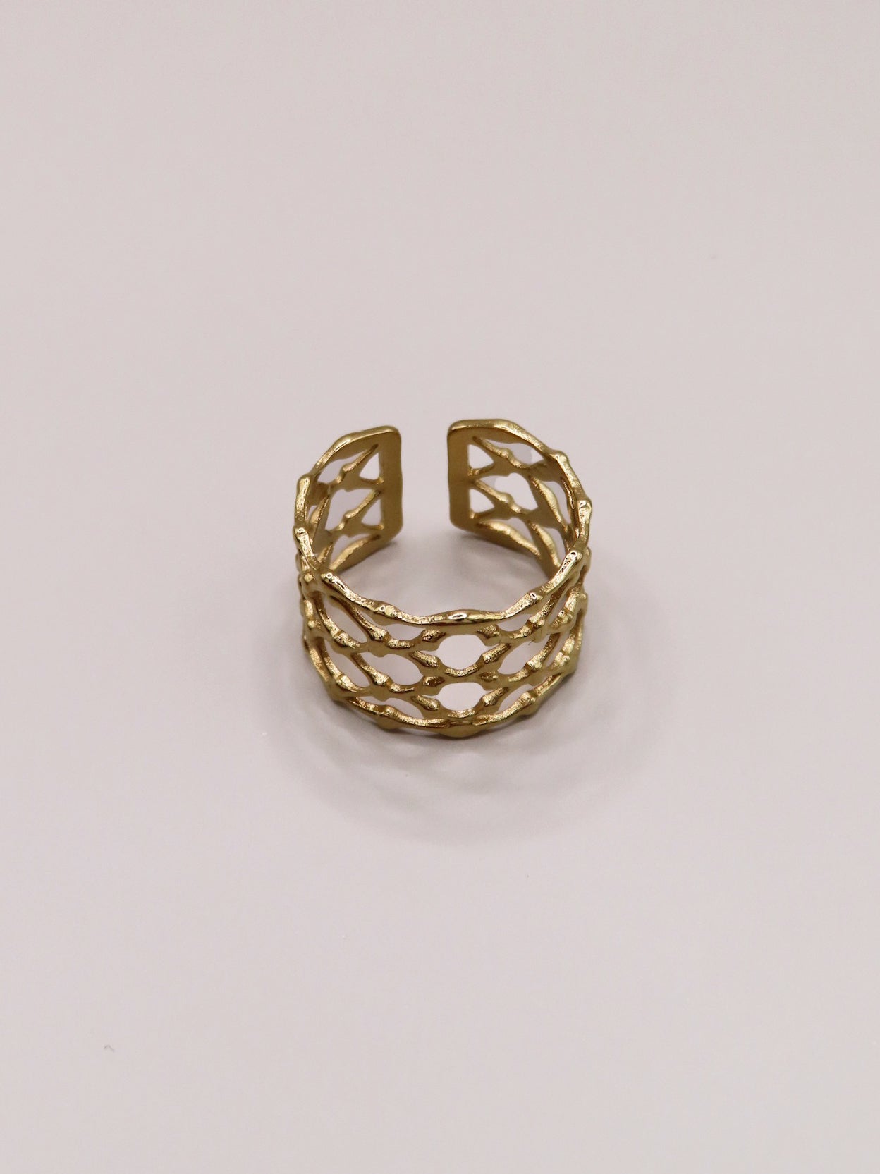 Bague en acier inoxydable, taille ajustable : la bague se resserre et s'agrandit, hypoallergénique, résiste à l'eau et ne noircit pas. Disponible en coloris doré.