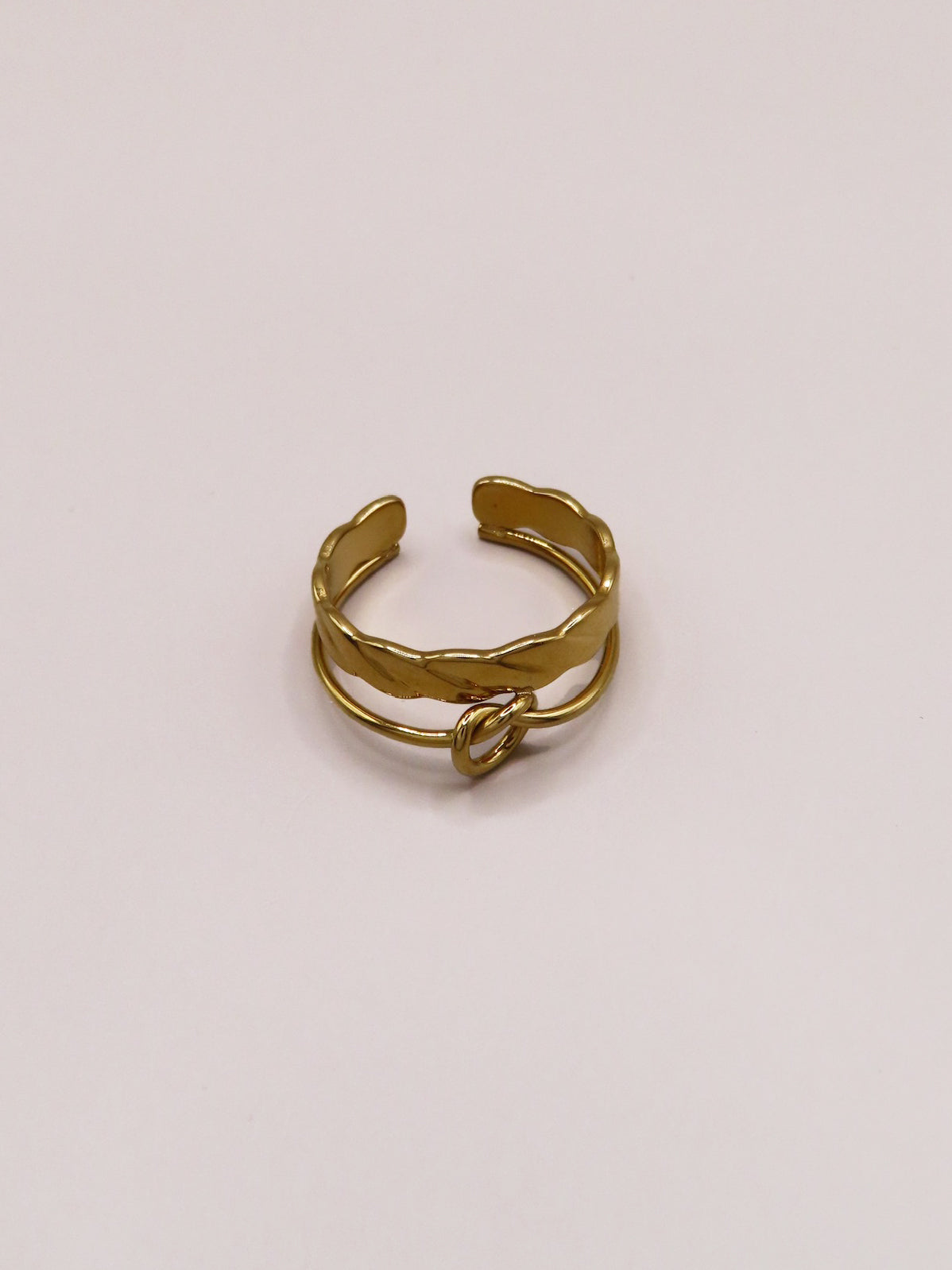 Bague en acier inoxydable, taille ajustable : la bague se resserre et s'agrandit, hypoallergénique, résiste à l'eau et ne noircit pas. Disponible en coloris doré.