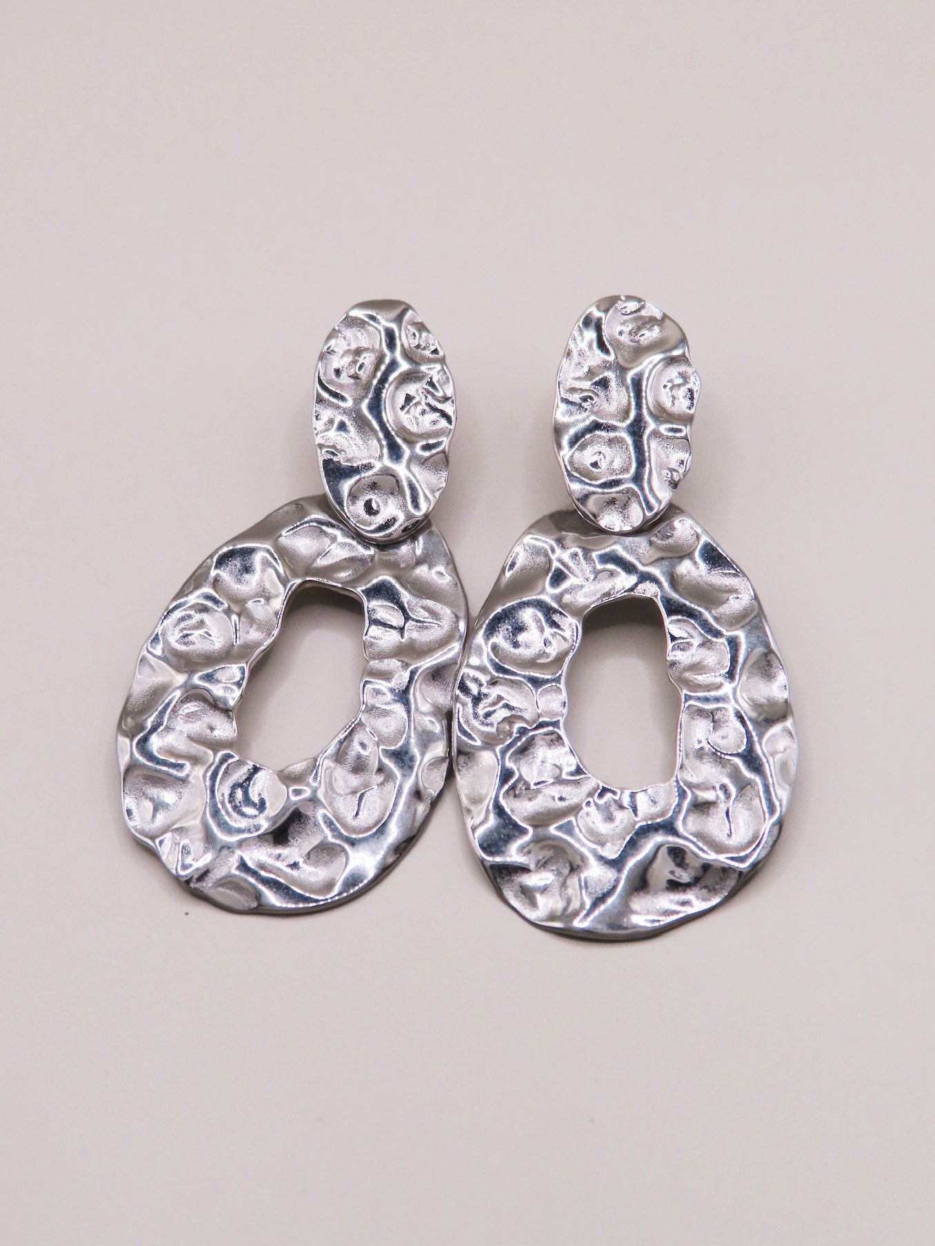 Les boucles d'oreilles Hélène, originales grâce à leur effet martelé.