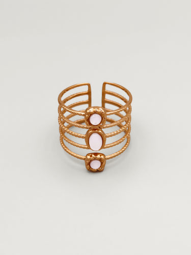 Bague en acier inoxydable, pierres naturelles, taille ajustable : la bague se resserre et s'agrandit, hypoallergénique, résiste à l'eau et ne noircit pas. Disponible en coloris doré.