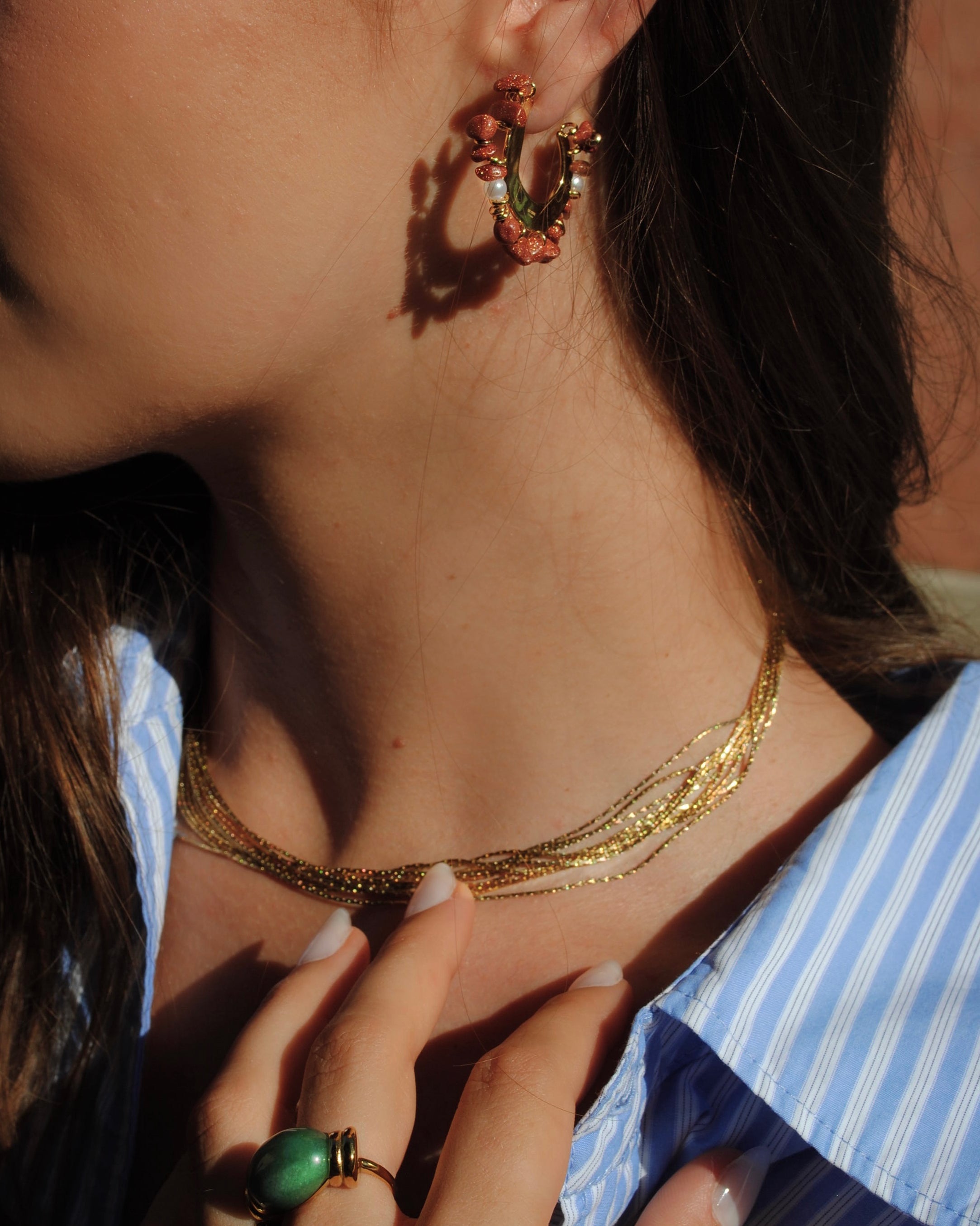 Affirmez votre style avec la bague Cézanne, sublimée par une pierre naturelle aux reflets doux, mise en valeur par un anneau doré élégant et intemporel.