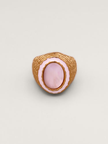 Bague en acier inoxydable, pierre naturelle, taille ajustable : la bague se resserre et s'agrandit, hypoallergénique, résiste à l'eau et ne noircit pas. Disponible en coloris doré.