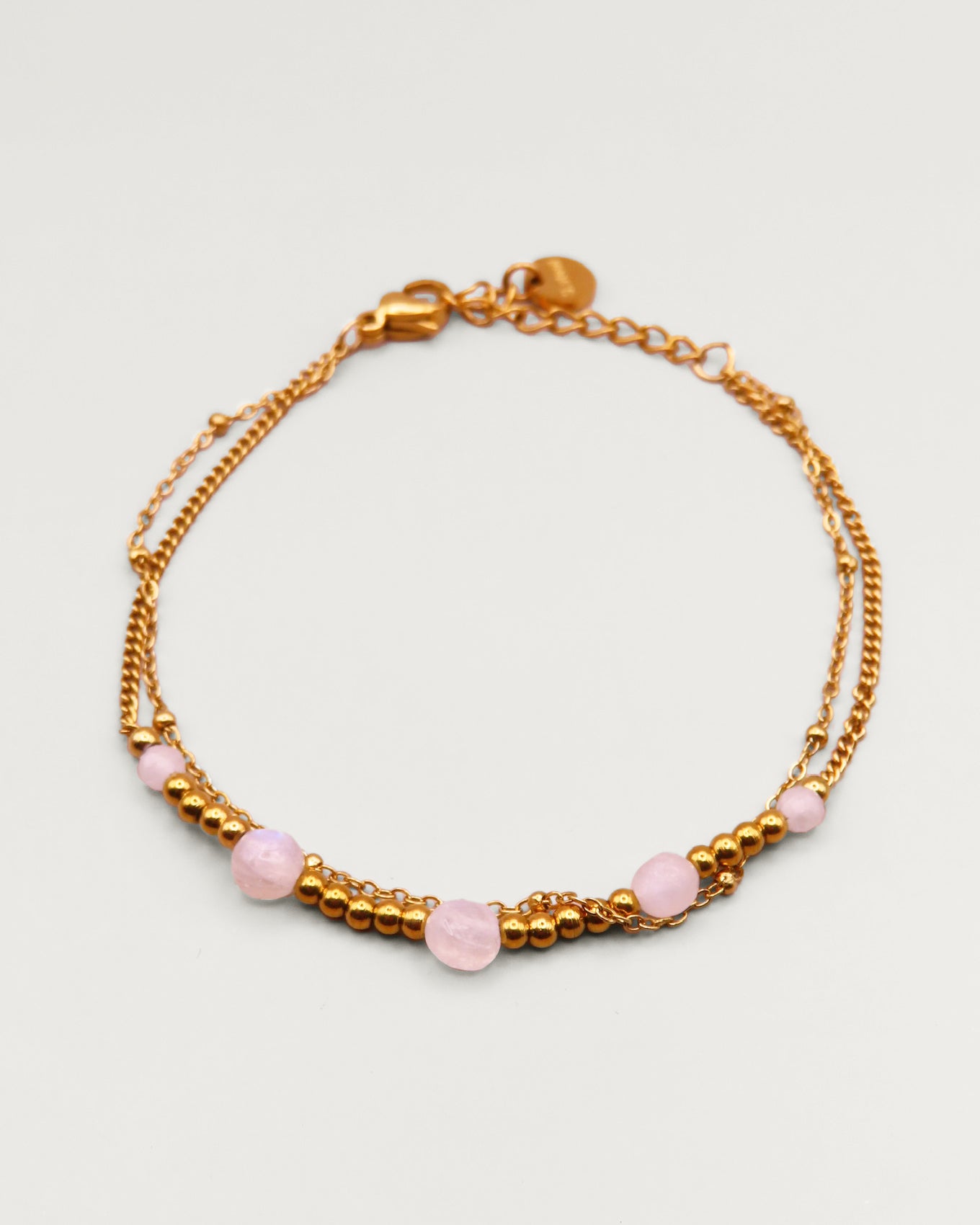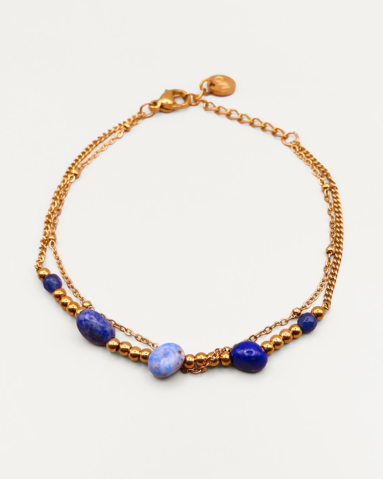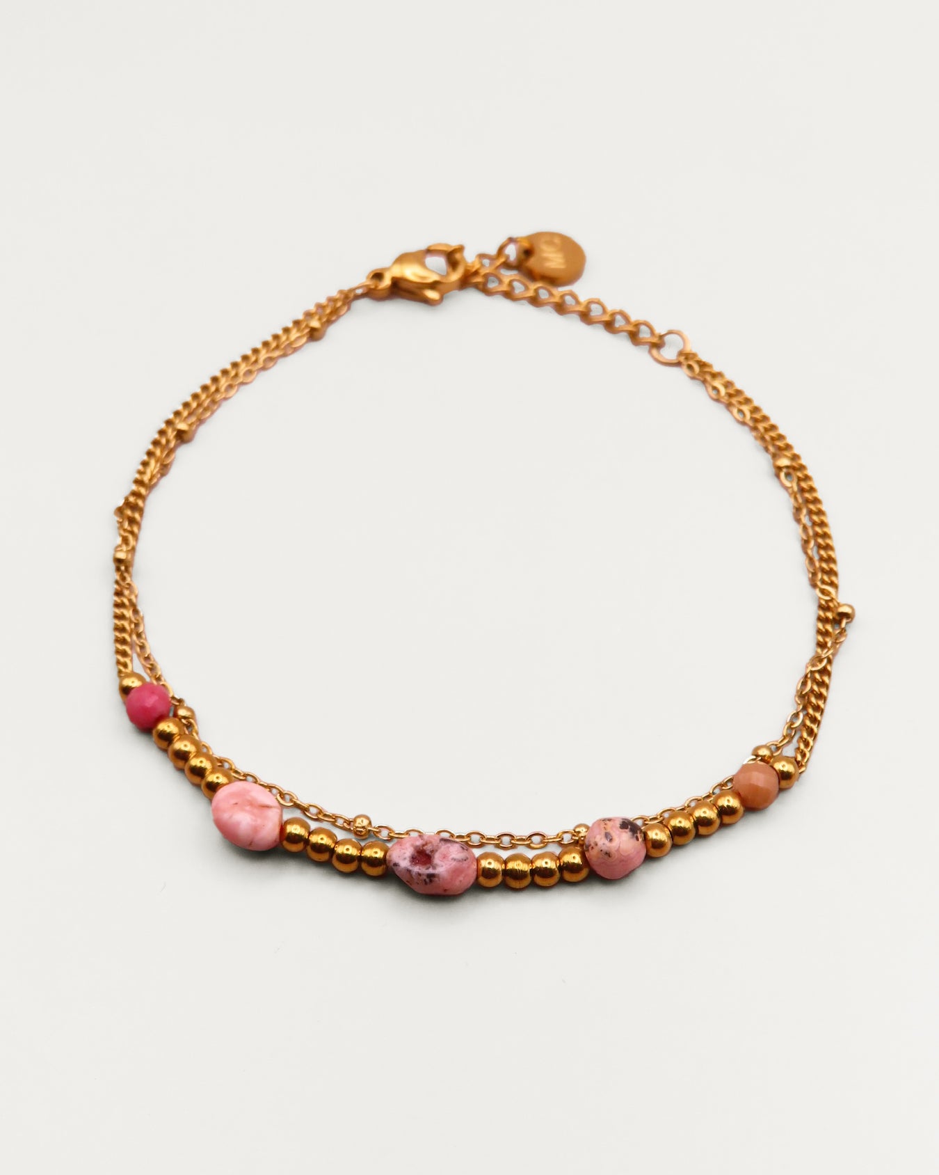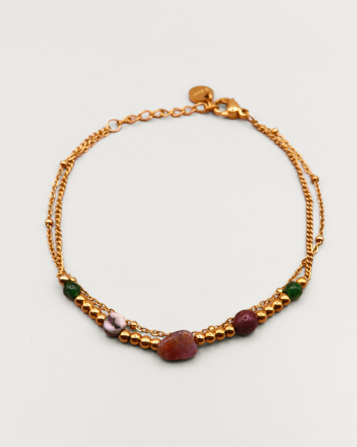Le bracelet Othilie allie finesse et authenticité. Ses pierres naturelles apportent une note de caractère, tandis que ses perles dorées délicates créent une harmonie élégante et moderne autour du poignet.
