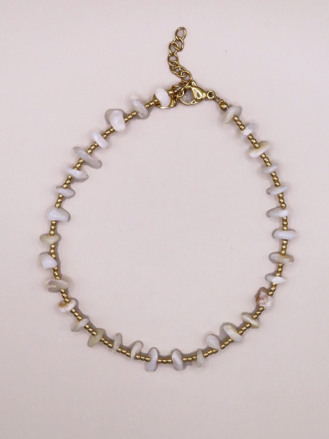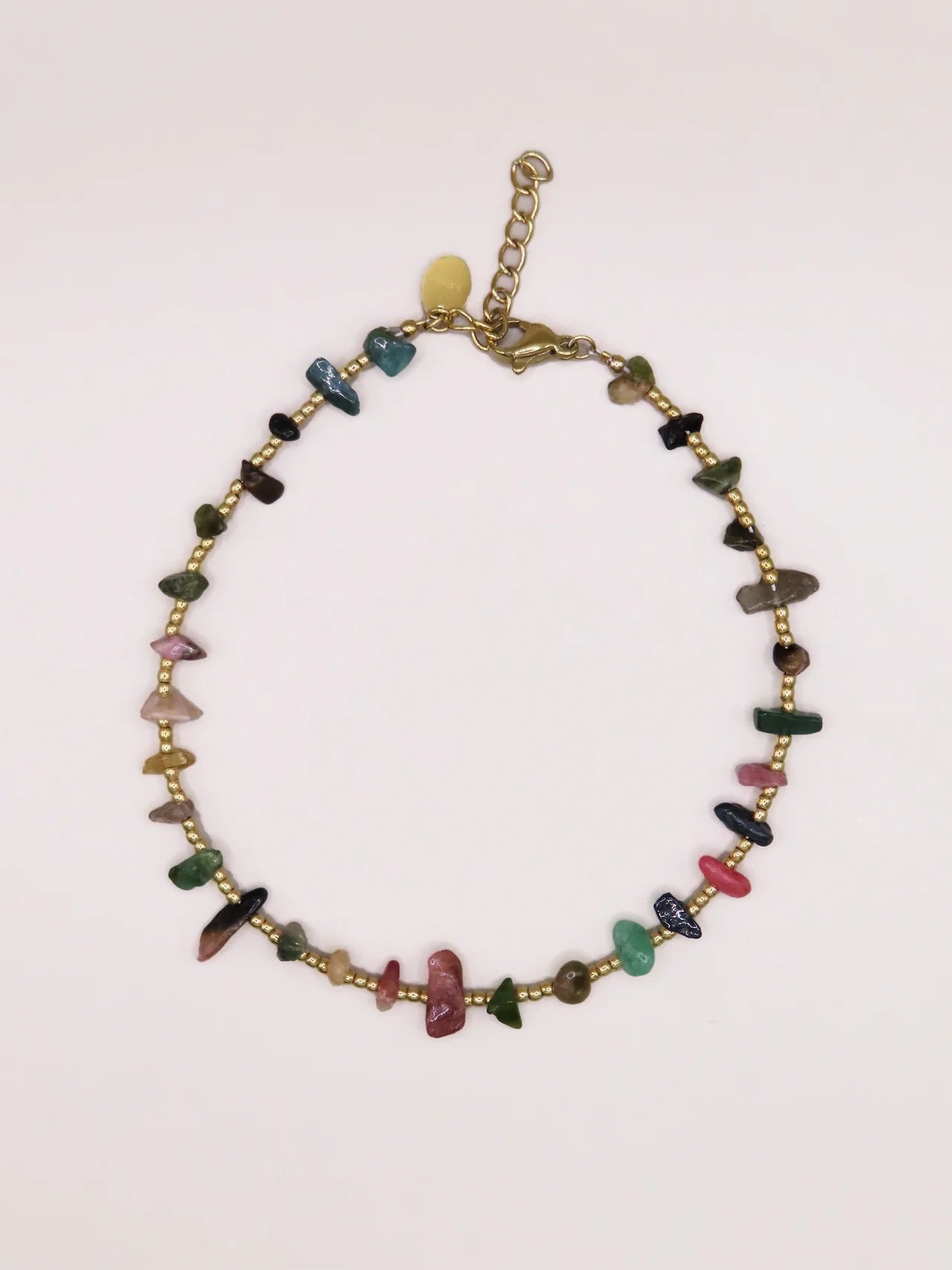 Chevillère en acier inoxydable, pierres naturelles, longueur réglable, hypoallergénique, résiste à l'eau et ne noircit pas. Disponible en plusieurs coloris.