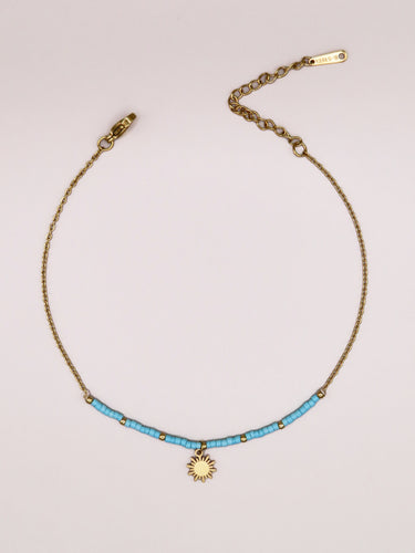 Chevillère en acier inoxydable, taille ajustable, hypoallergénique, résiste à l'eau et ne noircit pas. Disponible en coloris doré.