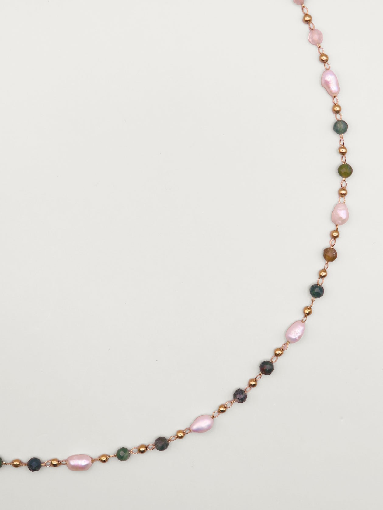 Le collier Sylvianne mêle pierres naturelles et perles d'eau douce pour un charme discret et raffiné. Idéal pour rehausser une tenue avec élégance et douceur.