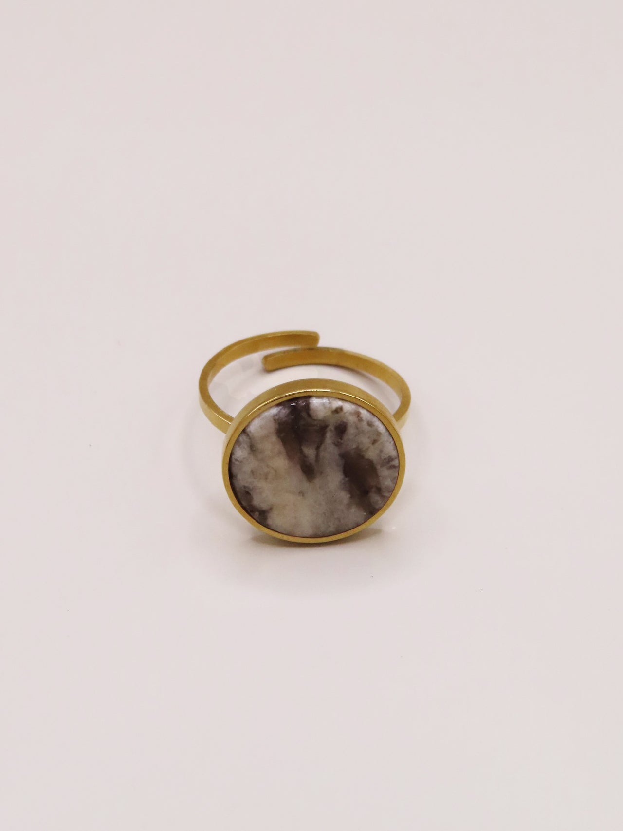 Bague en acier inoxydable, pierre naturelle, taille ajustable : la bague se resserre et s'agrandit, hypoallergénique, résiste à l'eau et ne noircit pas. Disponible en coloris doré.