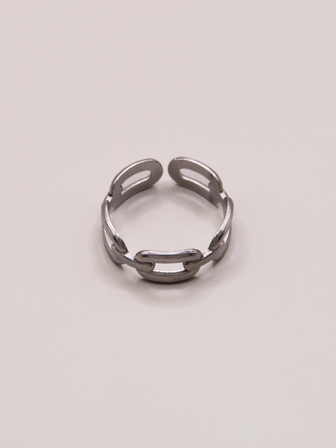 Bague en acier inoxydable, taille ajustable : la bague se resserre et s'agrandit, hypoallergénique, résiste à l'eau et ne noircit pas. Disponible en coloris argenté et doré.